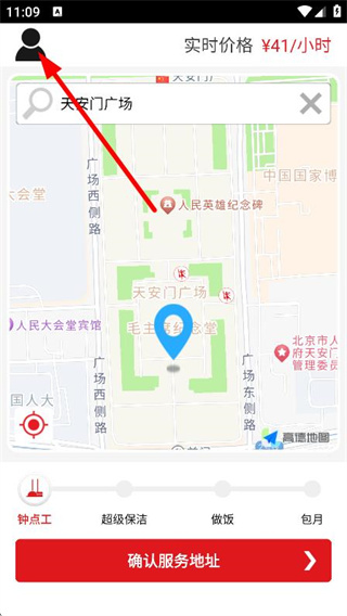 2、在主界面,点击左上角个人图标,进入服务介绍页面。