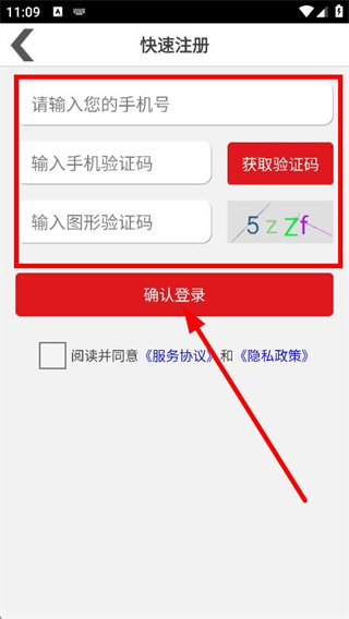 4、输入手机号、验证码、图形验证码,点击确认登录,完成账号登录操作。