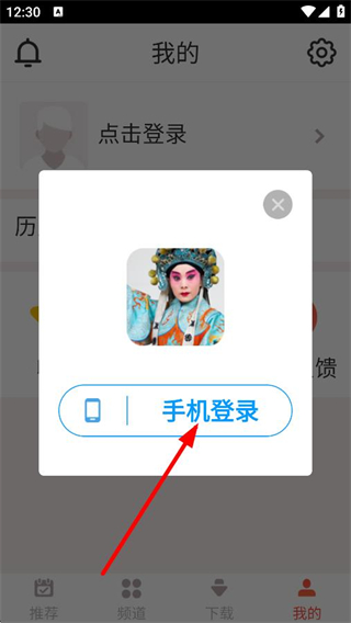 3、在登录方式选择弹窗中,点击手机登录,进入手机号登录页面。