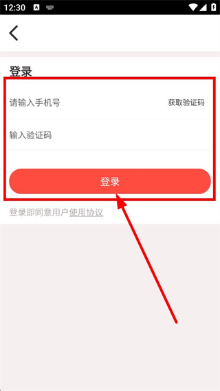 4、在手机号登录页面,输入手机号和验证码后点击登录,完成登录操作。