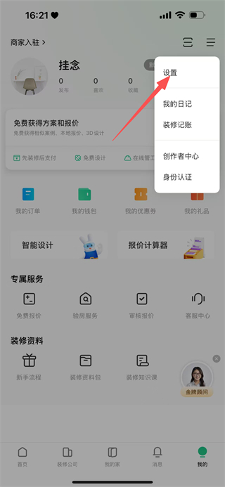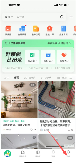 1、在土巴兔首页,点击底部我的,进入个人页面。