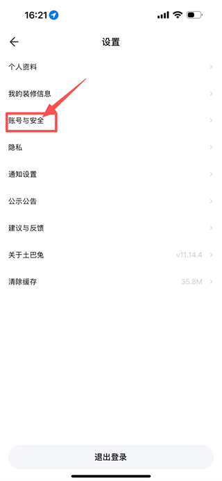 3、在设置页面,点击账号与安全,进入账号与安全页面。