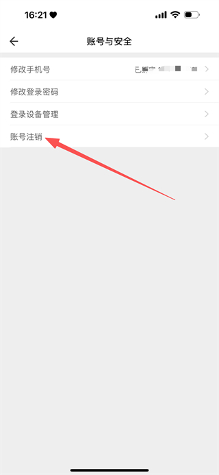 4、在账号与安全页面,点击账号注销,进入账号注销说明页面。