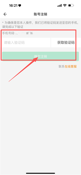 6、在验证页面,输入验证码后点击确定注销,完成账号注销操作。