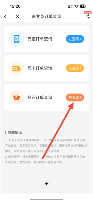 3、在订单查询界面,点击其它订单查询选项后的去查询按钮,进入快速订单查询界面。