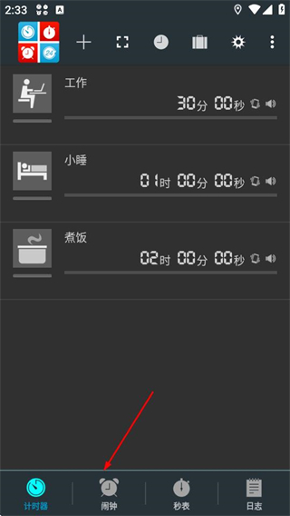 1、在首页的底部导航栏点击闹钟,进入闹钟界面。