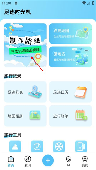 1、在足迹地图首页点击制作路线,进入我的路线界面。