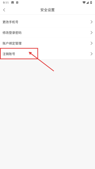 4、在安全设置页面,点击注销账号选项,完成账号注销操作。