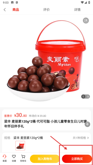 4、在商品详情页,点击立即购买按钮,完成该商品的购买操作。