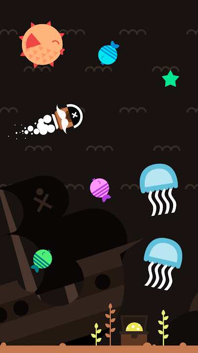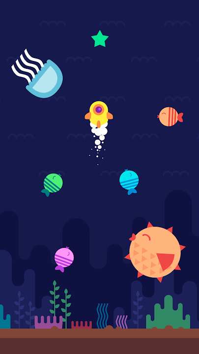 触摸屏幕可控制在海洋深处移动的角色,长按屏幕能激活冲刺模式,但要小心消耗氧气量会加倍;