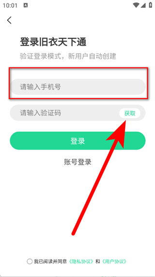 3、在登录页面,输入手机号后,点击获取验证码。
