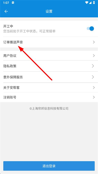 3、在设置页面,点击订单推送声音进入声音设置界面。