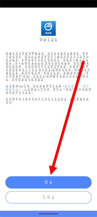 1、打开中储智运,在声明与政策弹窗中点击同意。