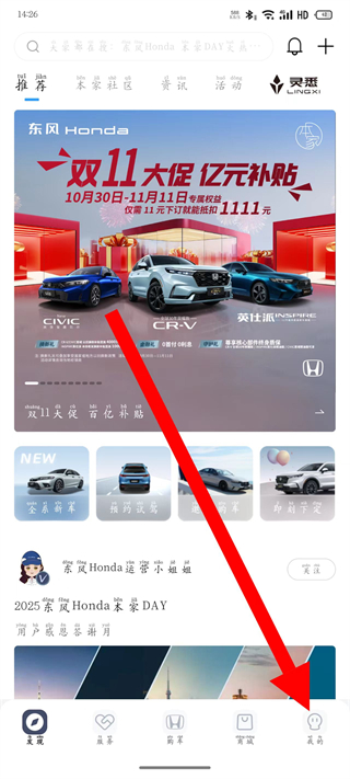 1、打开东风本田,点击底部导航栏我的,进入个人中心页面。