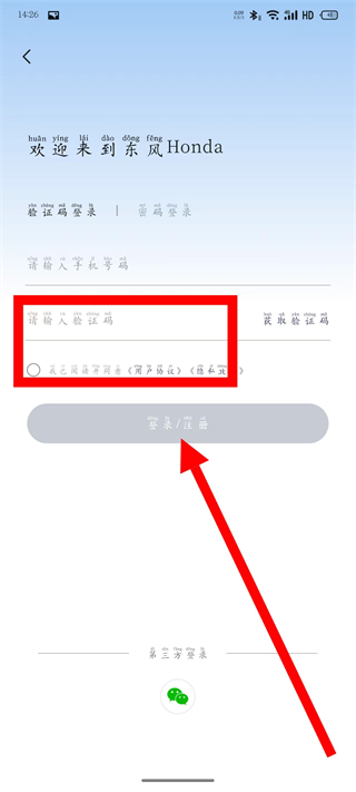 4、输入验证码,点击登录注册按钮,完成账号登录。