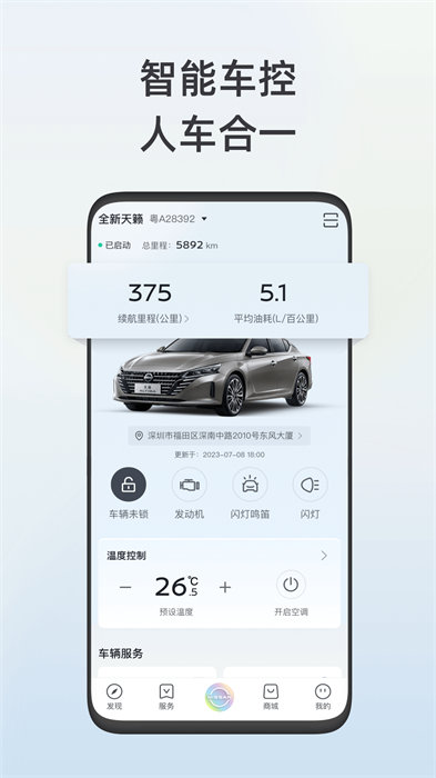 注:因车型、车型版本配置的不同,日产智联APP所提供的功能有所区别。