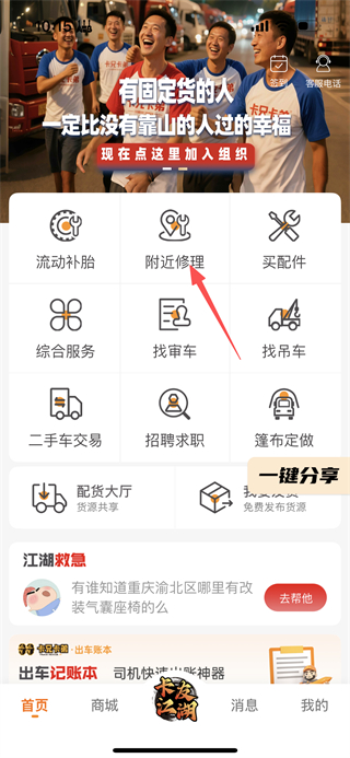 流动补胎、附近修理、买配件等六大核心服务,精准覆盖货车司机行车途中可能遇到的各类问题,实现需求全满足。