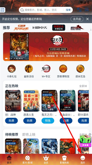 根据系统提供的影片,查看人气榜单或即将上映的影片。