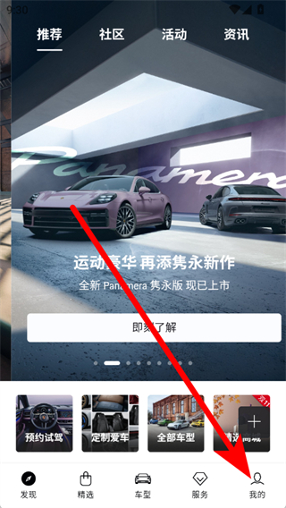 1、打开保时捷,点击底部导航栏我的,进入个人中心页面。