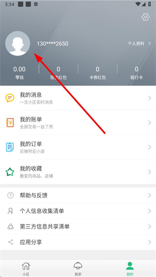 2、在我的页面,点击上方的头像区域,进入个人资料页面。