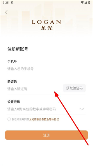 4、在注册新账号页面,依次输入手机号、获取验证码、设置密码,勾选同意条款点击注册按钮。