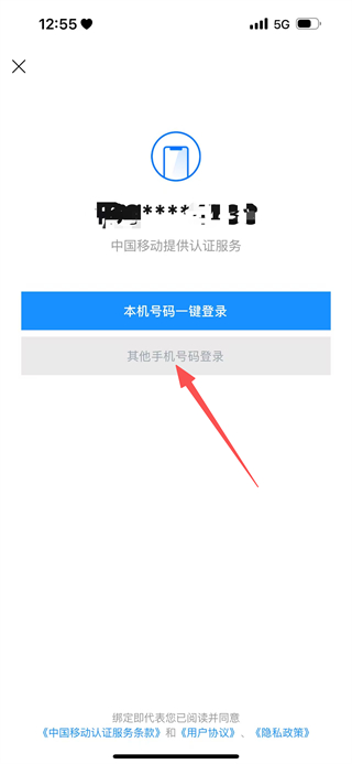 4、在登录方式选择页面,点击其他手机号码登录,进入手机号快捷登录页面。