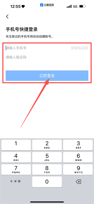 5、在手机号快捷登录页面,输入手机号和验证码后点击立即登录,完成登录操作。