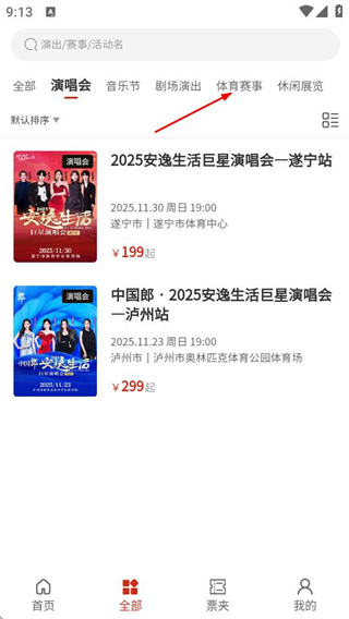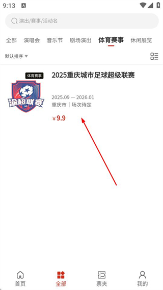 2、在活动分类界面点击体育赛事,进入体育赛事列表界面。