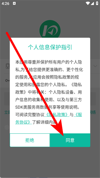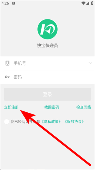 1、打开快宝快递员,在弹窗中点击同意,进入登录页面。