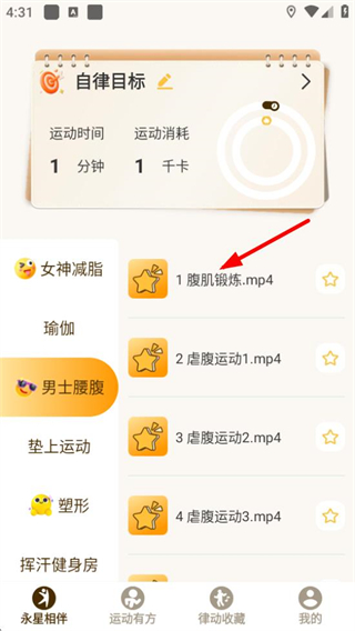 2、在男士腰腹分类中点击腹肌锻炼可进入该运动视频。