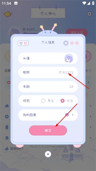 3、在个人信息页面修改昵称后,点击“确定”按钮。