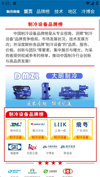 1、在首页点击制冷设备,进入制冷设备品牌榜界面。