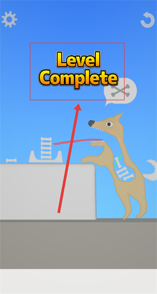 4、当狗狗的身体轮廓被骨头填满后,即可完成关卡任务,屏幕会显示“Level Complete”的提示。