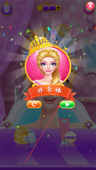 4、完成一系列美妆护理后,公主形象焕然一新,获得非常棒的评价,可继续挑战或进入下一个美妆环节。