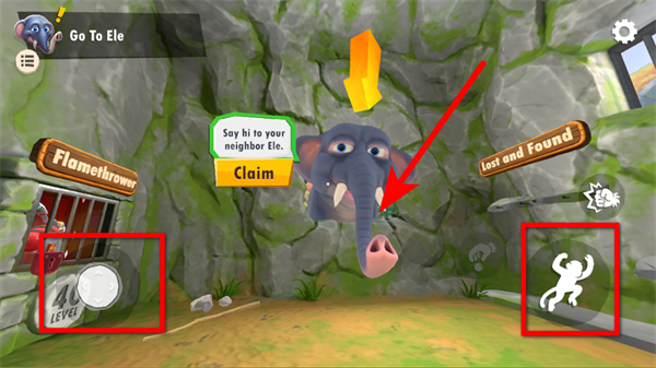 3、根据游戏提示,如与大象互动,点击相应的互动按钮,完成任务获取奖励,逐步探索游戏场景,解锁更多玩法。