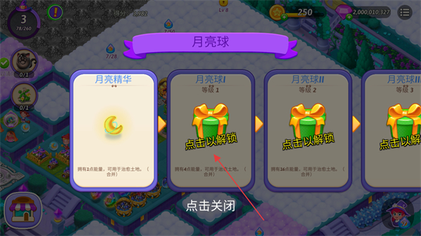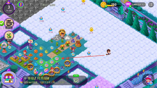 1、合并月亮露珠,升级为更高等级的月亮露珠Ⅱ,积累能量用于治愈土地。