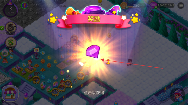 4、完成任务后获得宝石奖励,点击收取,用于升级或解锁新内容。