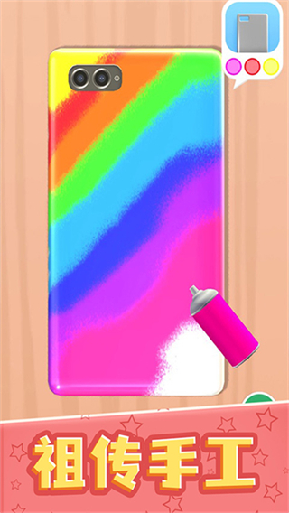 游戏画面制作精良,手机壳材质、颜料光泽、贴纸质感等细节还原真实,操作过程中的视觉反馈清晰,带来沉浸式的手工制作视觉体验。