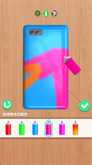 2、选择喷漆颜色如蓝色,左右滑动获取更多喷漆,喷涂手机壳。