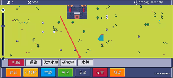 2、弹出的建造菜单之后,点击水井选项准备建造水井。