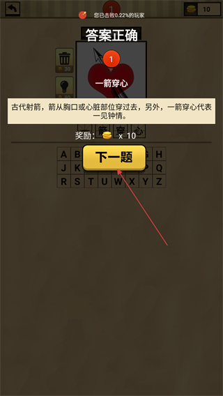 4、猜中成语后,点击下一题可继续挑战后续关卡。