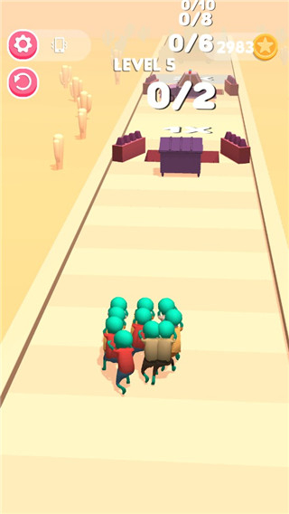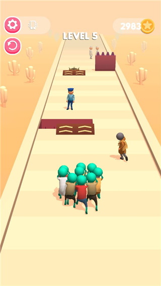 关卡难度随进程逐步提升,从初期简单的人数积累,到后期结合动态场景与复杂障碍的综合挑战,每一关都有新的玩法亮点,保持持续的游戏新鲜感。