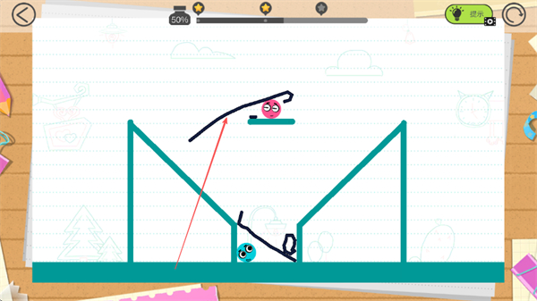3、通过绘制的线条引导粉色小球下落,与蓝色小球碰撞,完成关卡目标。