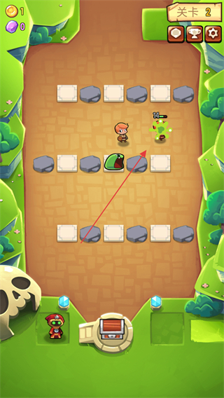 2、进入关卡如关卡2,操控升级后的怪物在地图中移动,攻击敌方小人单位,阻止其靠近己方区域。