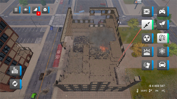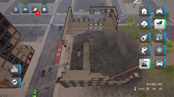 3、切换工具如破坏笔,对建筑结构进行精细破坏,加速建筑损毁。