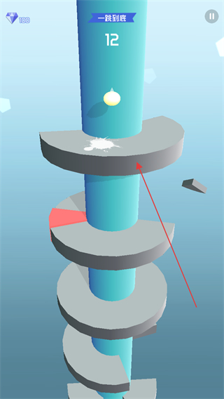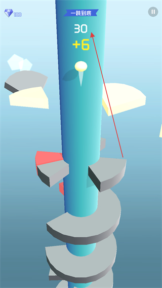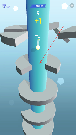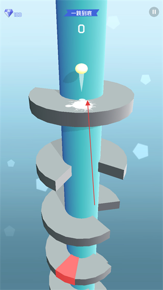 1、操控小球从顶层平台开始下落,瞄准平台的缺口位置,让小球顺利穿过,避免碰到平台边缘。
