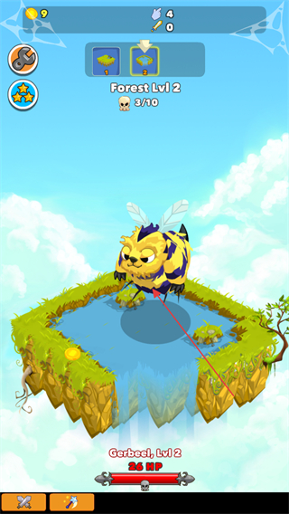 1、在场景中点击怪物进行攻击,击败怪物可获得金币和经验,提升关卡等级如森林等级2、3、4。