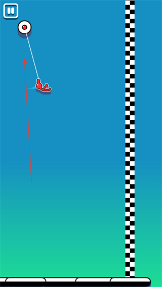 2、在合适的时机松开飞钩,让火柴人向右侧的黑白格子终点线飞行。