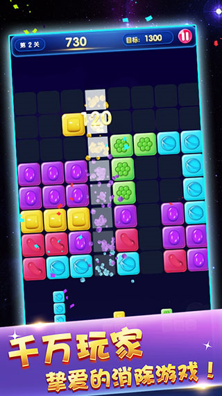 不同模式搭配不同视觉元素,糖果、方块等消除对象造型可爱,背景色彩清新,视觉体验愉悦。