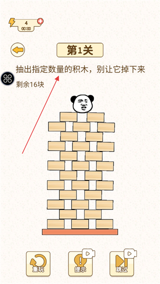 4、持续抽取积木,直到完成指定数量的抽取任务,顺利通过关卡。
